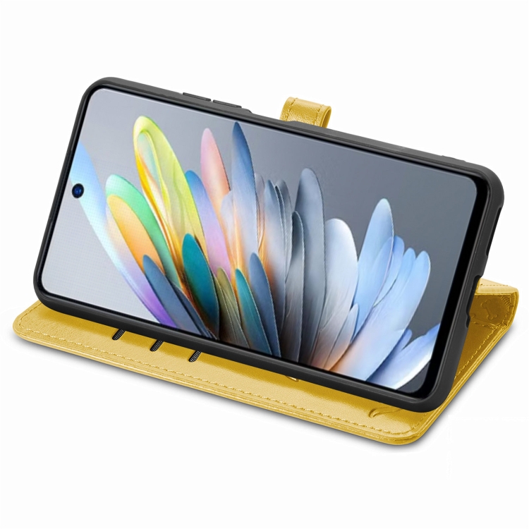 Funda de Piel con Relieve Gato y Perro para ZTE Blade A75 4G (Amarilla)