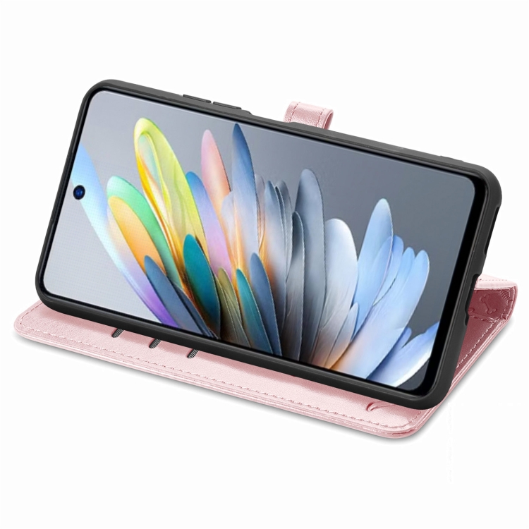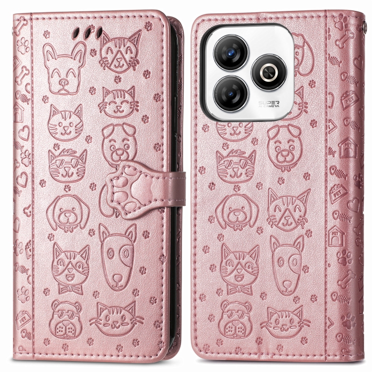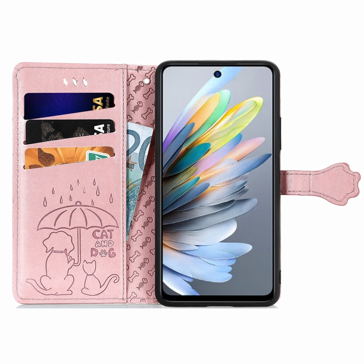Funda de Piel con Relieve Gato y Perro para ZTE Blade A75 4G (Oro Rosa)