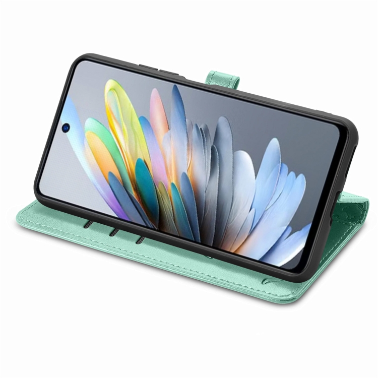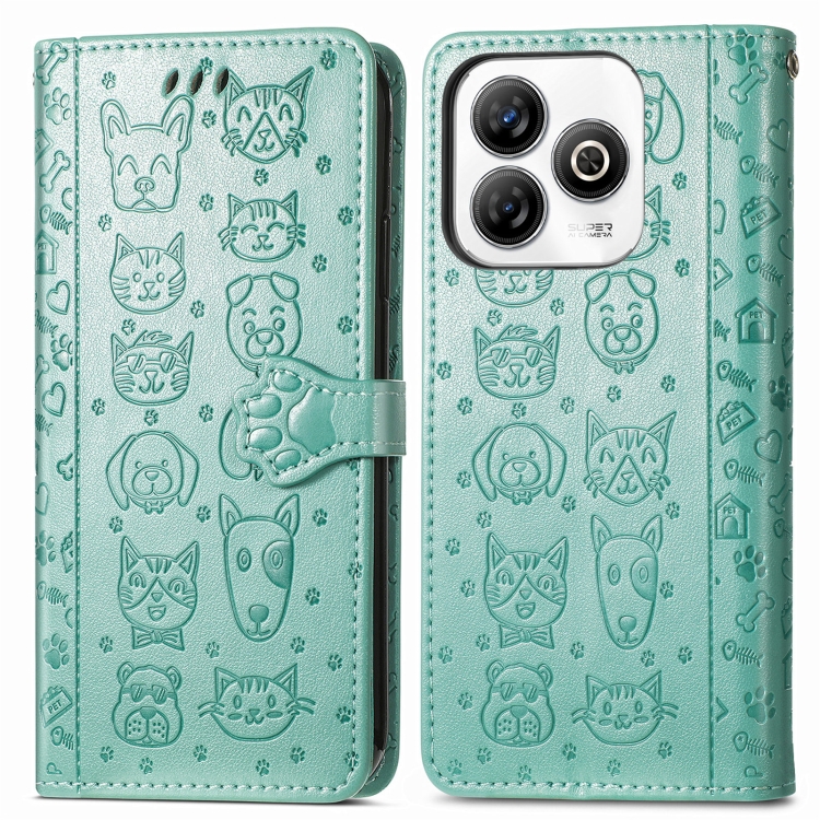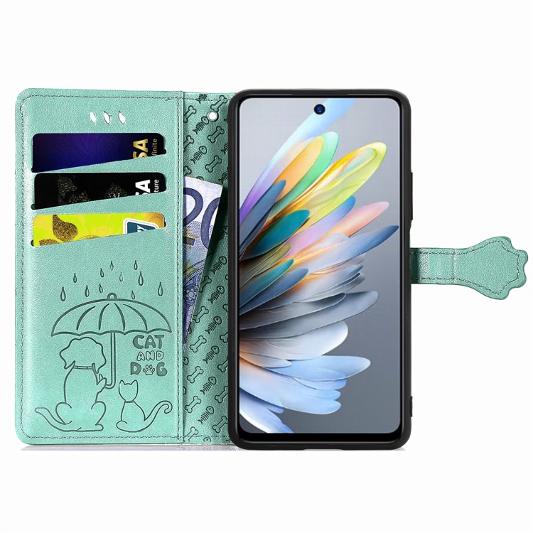 Funda de Piel con Relieve Gato y Perro para ZTE Blade A75 4G (Verde)