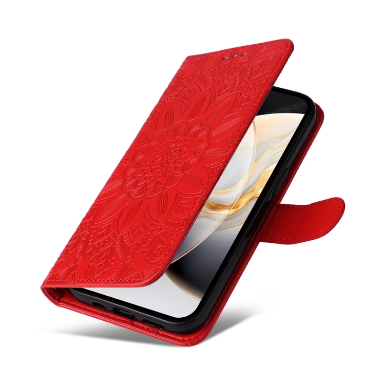 Funda de Piel con Relieve Girasol para Teléfono Tecno Camon 30 Pro (Rojo)