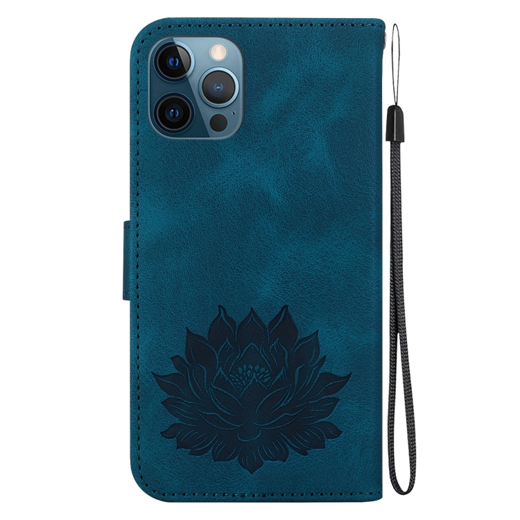 Funda de Piel con Relieve de Loto para iPhone 12/12 Pro (Azul Oscuro)