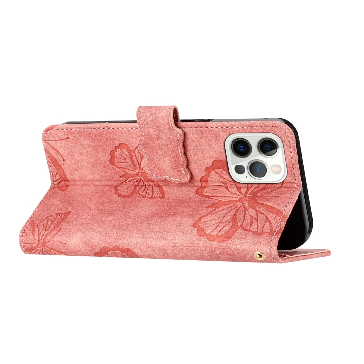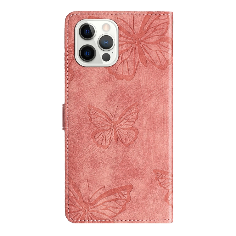Funda de Piel con Relieve de Mariposa para iPhone 16 Pro Max (Rosa)