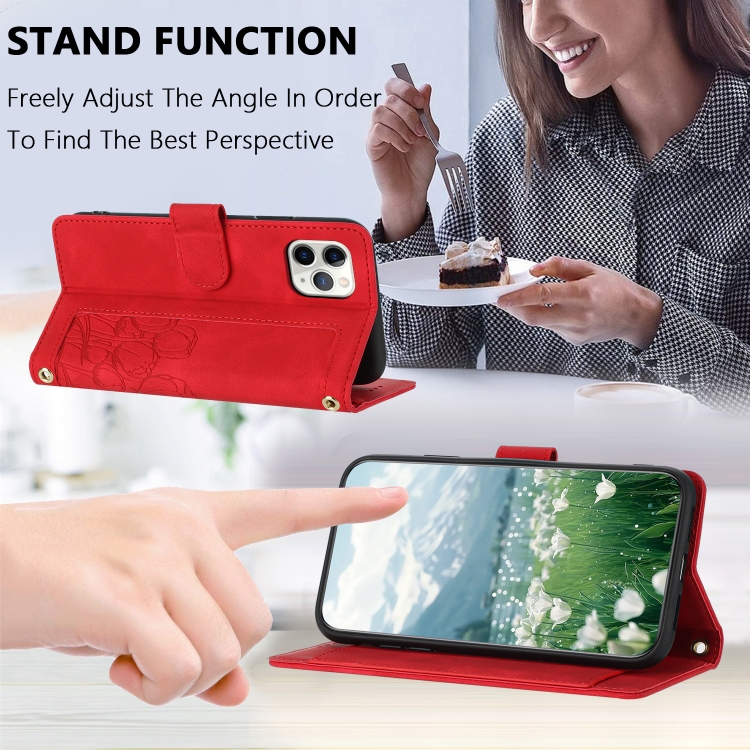 Funda de Piel con Relieve de Tulipanes para iPhone 11 Pro con Cordón (Rojo)