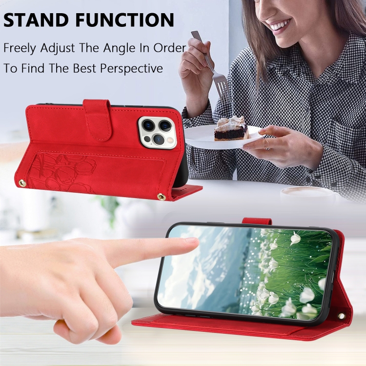 Funda de Piel con Relieve de Tulipanes para iPhone 12 Pro Max con Cordón (Rojo)