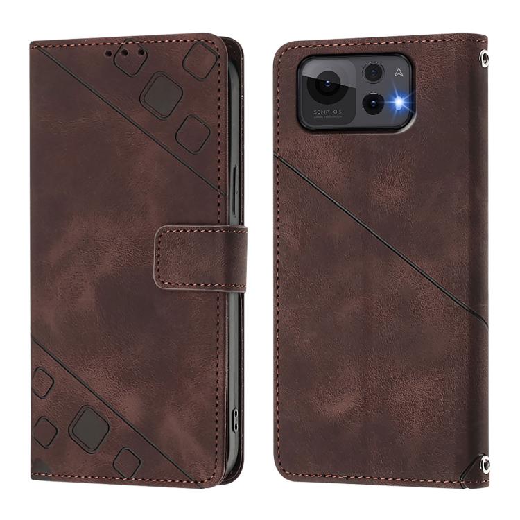 Funda de Piel con Relieve para Asus Zenfone 12 Ultra (Marrón)