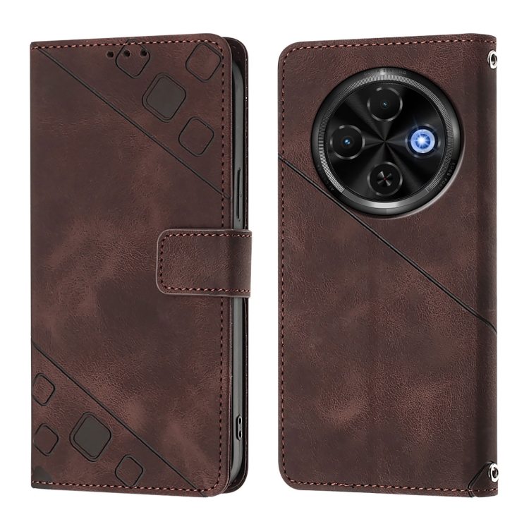 Funda de Piel con Relieve para Tecno Spark 30C 5G y Pop 9 5G (Marrón)