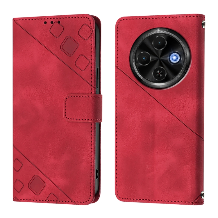 Funda de Piel con Relieve para Tecno Spark 30C 5G y Pop 9 5G (Roja)