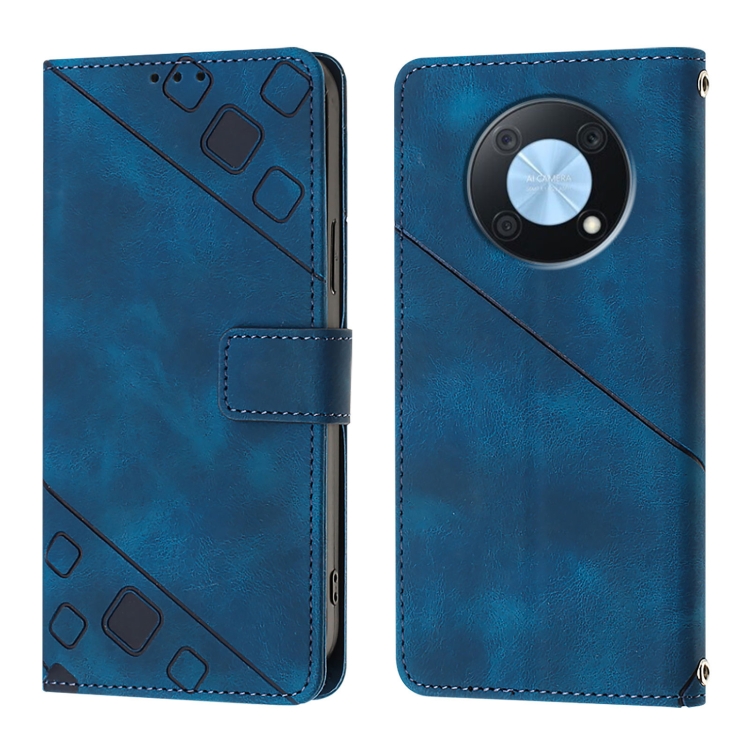 - 1x Funda de Piel con Relieve para Huawei Enjoy 50 Pro y Nova Y90 (Azul)