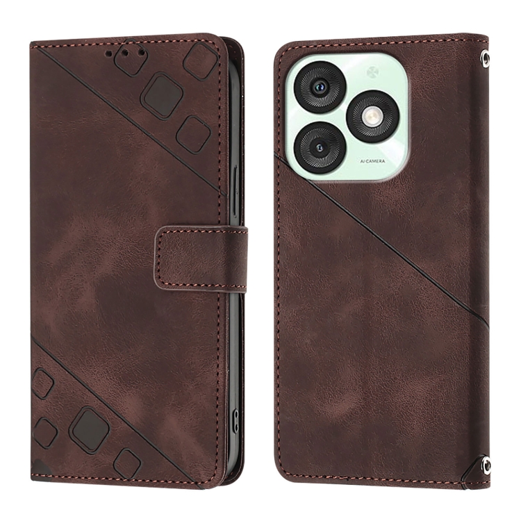 Funda de Piel con Relieve para Teléfono Itel A50 (Marrón)