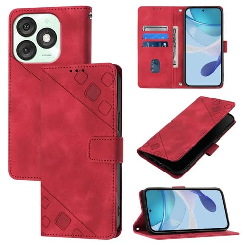 Funda de Piel con Relieve para Teléfono Itel A50 (Roja)