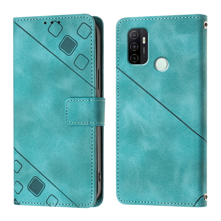 Funda de Piel con Relieve para Teléfono Oppo A32 2020 4G/A53 2020 4G (Verde)