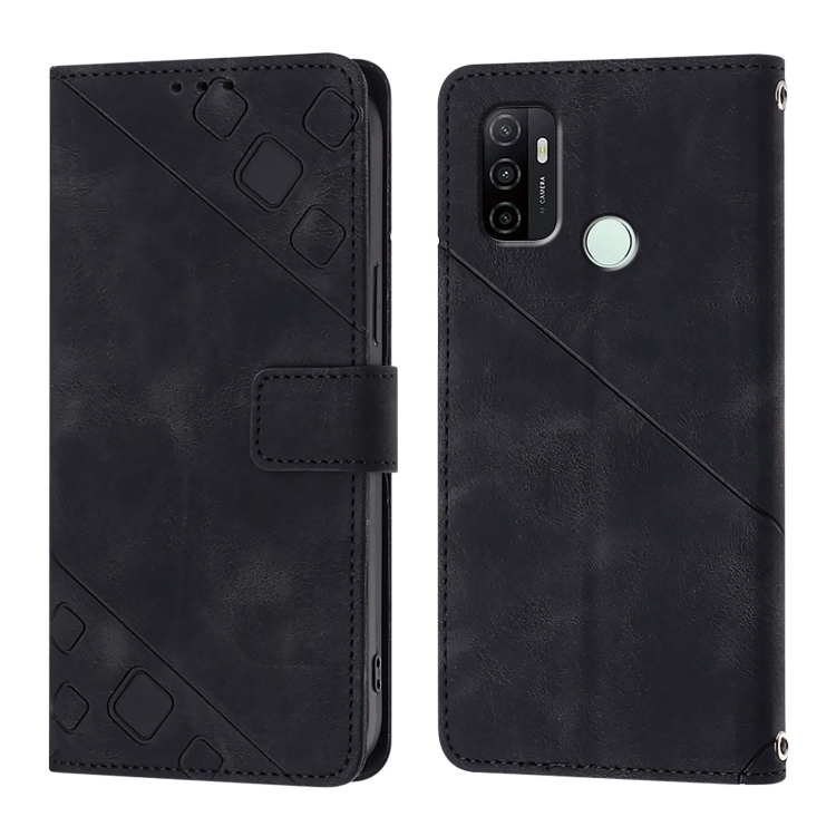 Funda de Piel con Relieve para Teléfono Oppo A53S 4G/A33 2020 4G (Negra)