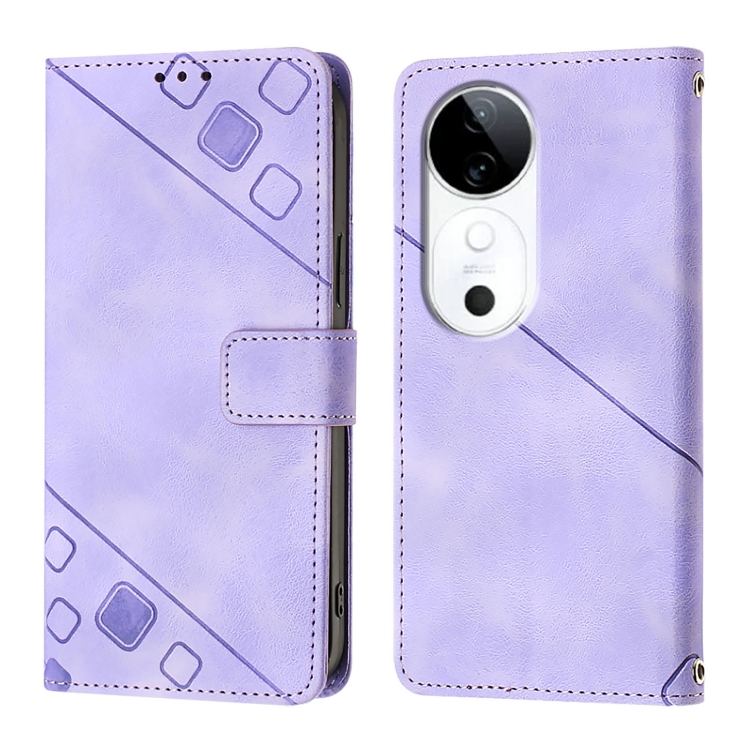 Funda de Piel con Relieve para Teléfono Vivo S19 (Morado Claro)