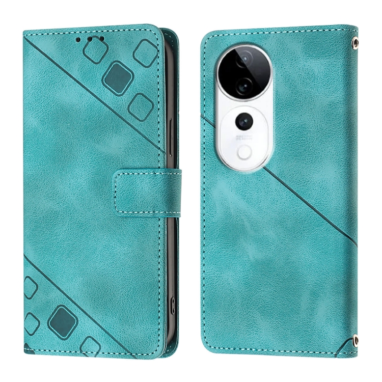 Funda de Piel con Relieve para Teléfono Vivo S19 Pro (Verde)