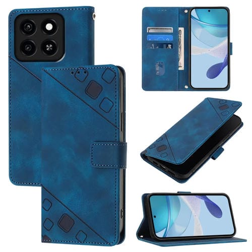 Funda de Piel con Relieve para Teléfono ZTE Blade A35/A55 (Azul)