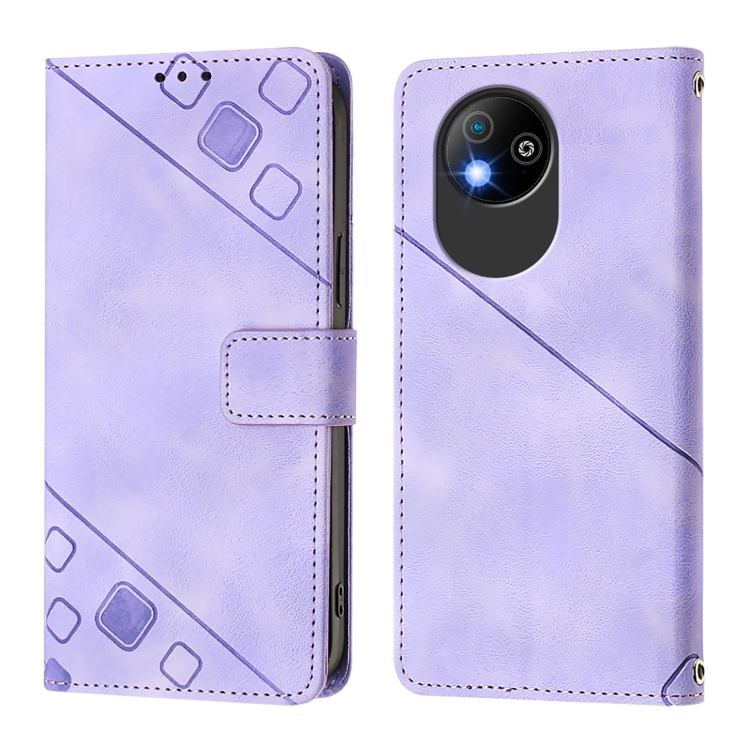 Funda de Piel con Relieve para Teléfono ZTE Blade A35 Lite/A35 Core (Morado Claro)