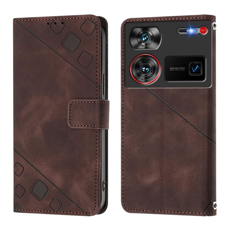 Funda de Piel con Relieve para Teléfono ZTE Nubia Z60 Ultra (Marrón)