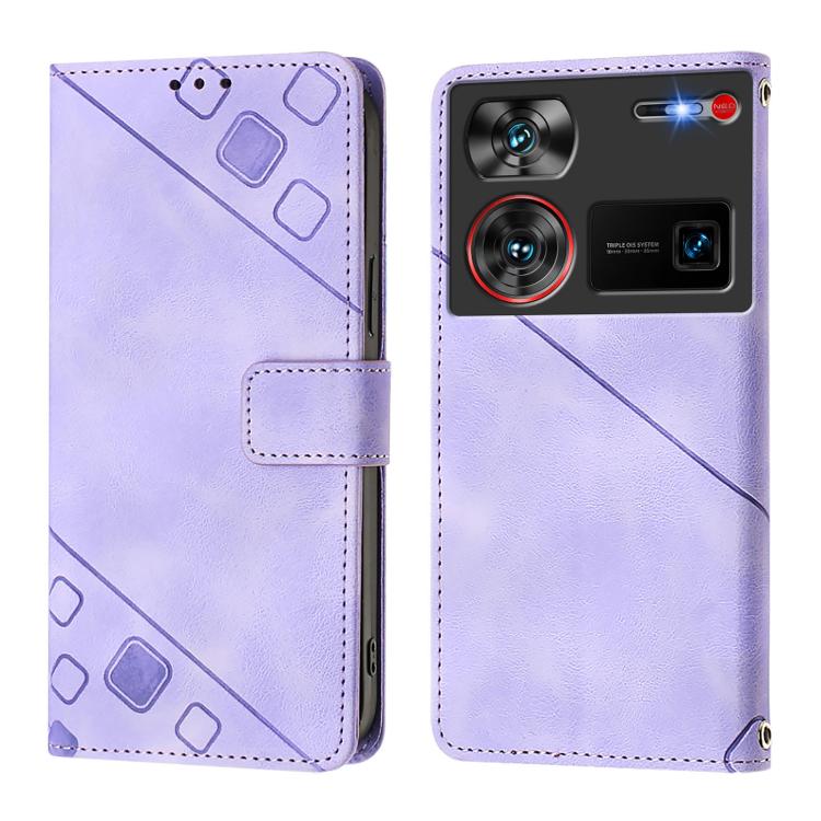 Funda de Piel con Relieve para Teléfono ZTE Nubia Z60 Ultra (Morado Claro)