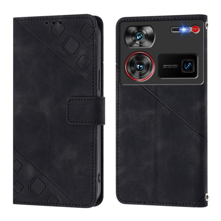 Funda de Piel con Relieve para Teléfono ZTE Nubia Z60 Ultra (Negra)