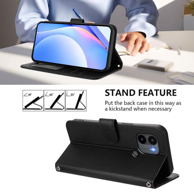 Funda de piel con relieve RFID y cordón para Redmi A1+ / A2+ / Poco C50 / C51 (negro)