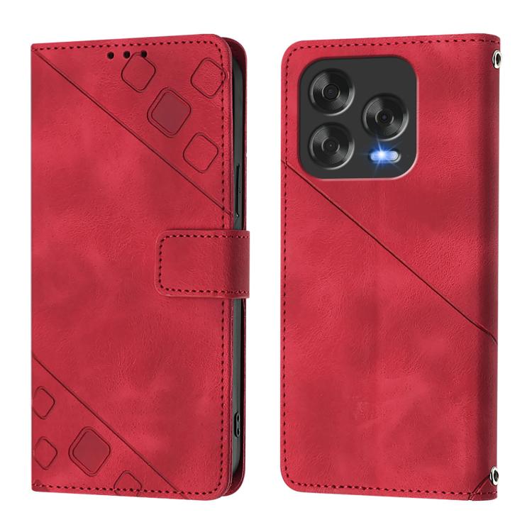 Funda de Piel Sintética con Relieve para ZTE Blade V70 (Rojo)