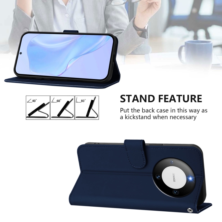 Funda Piel Huawei Mate 60 con Cordón Tacto Piel (Azul Marino)