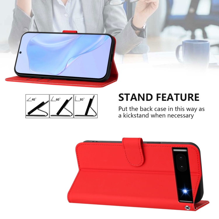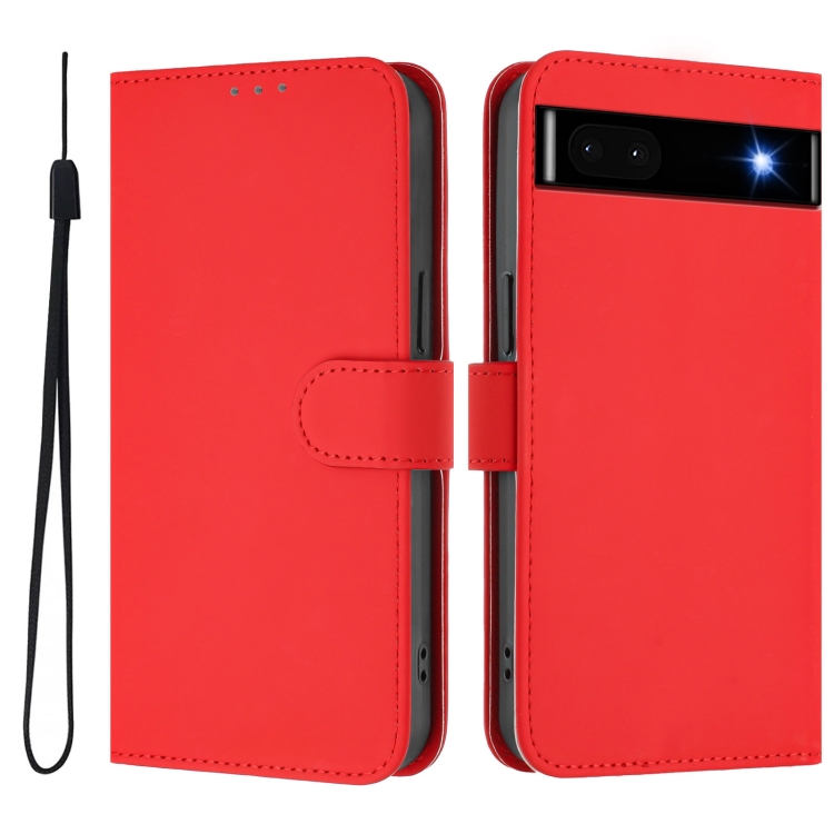 Funda de Piel para Google Pixel 6A con Cordón y Tacto Suave (Rojo)