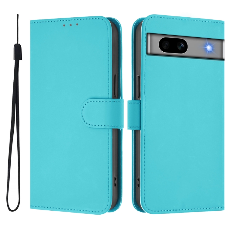 Funda de Piel para Google Pixel 7A con Cordón y Tacto Suave (Azul Lago)