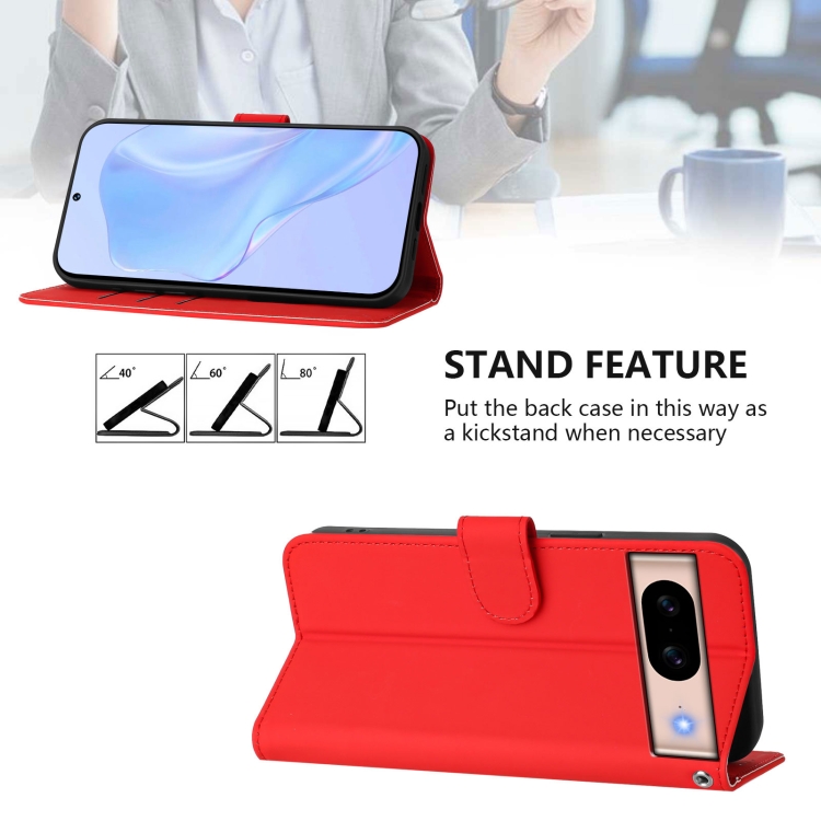 Funda de Piel para Google Pixel 8A con Cordón y Tacto Suave (Rojo)