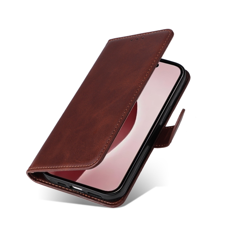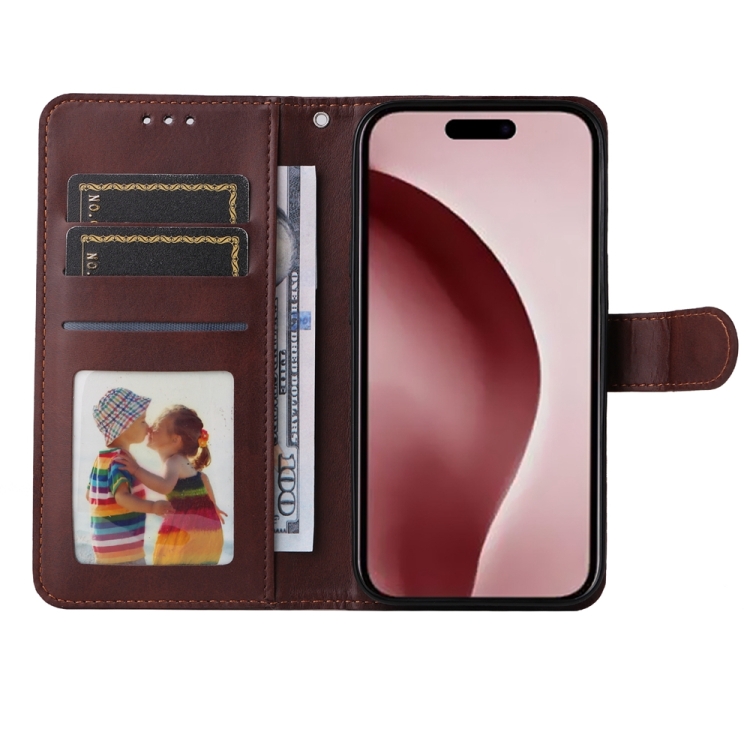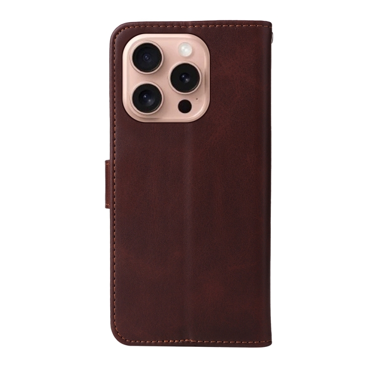 Funda de Piel con Tapa para iPhone 16 Pro Textura Clásica Becerro (Marrón)