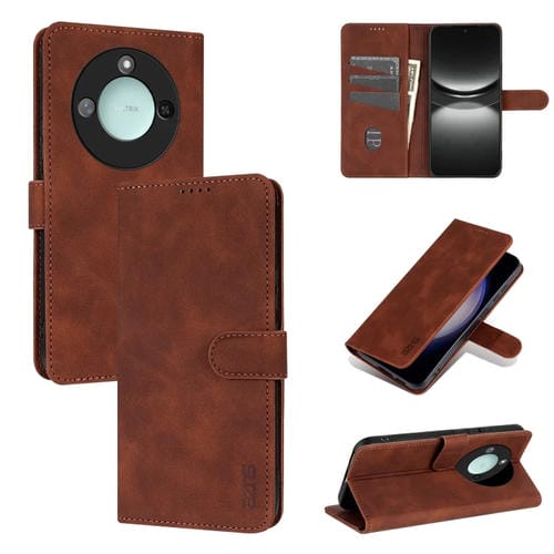 Funda de Piel con Tapa y Textura de Piel de Becerro para Honor X60 Azns (Marrón)