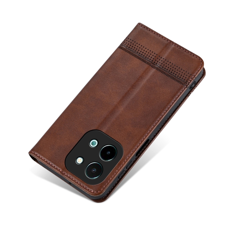 Funda de Piel con Textura de Becerro Magnética Azns para Vivo Y28 4G (Marrón Oscuro)