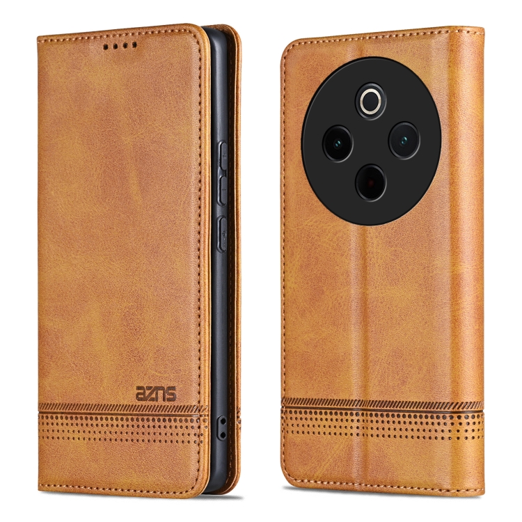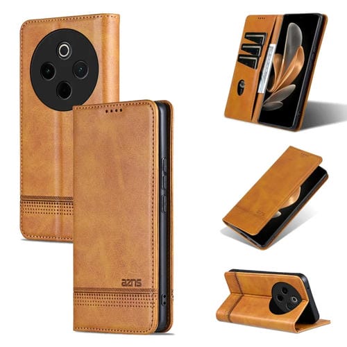 Funda Magnética Azns de Piel con Textura de Becerro para Vivo Y300 Pro (Marrón Claro)