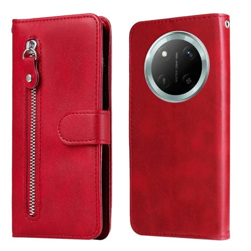 Funda de Piel Textura de Becerro con Cremallera para Honor X9C y Magic7 Lite (Rojo)