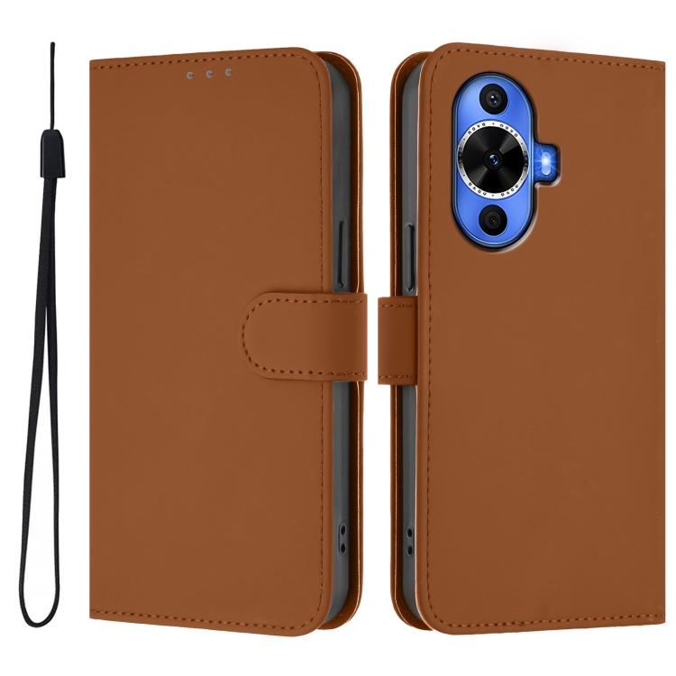 Funda de Piel para Huawei Nova 12S 4G con Textura y Cordón (Marrón)