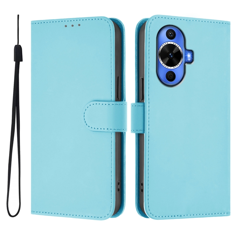 Funda de Piel para Huawei Nova 12S 4G con Textura Lisa y Cordón (Azul Cielo)