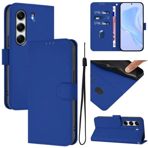 Funda de Piel para Tecno Camon 40 Pro 4G con Textura Lisa y Cordón (Azul Oscuro)