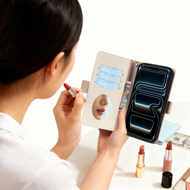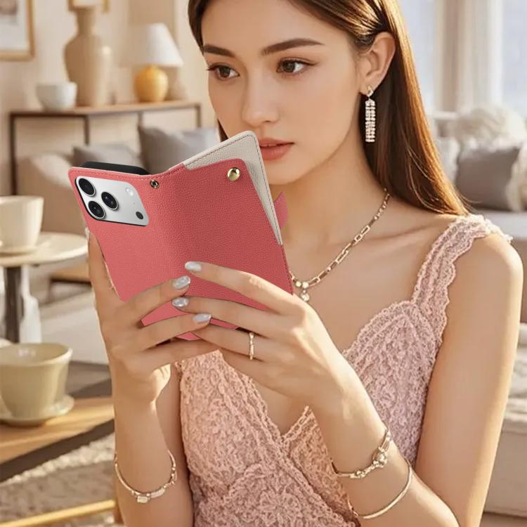 Funda de piel con textura de lichi y espejo para iPhone 17 Pro (Roja)