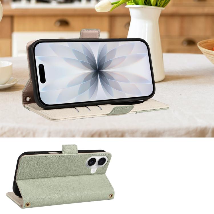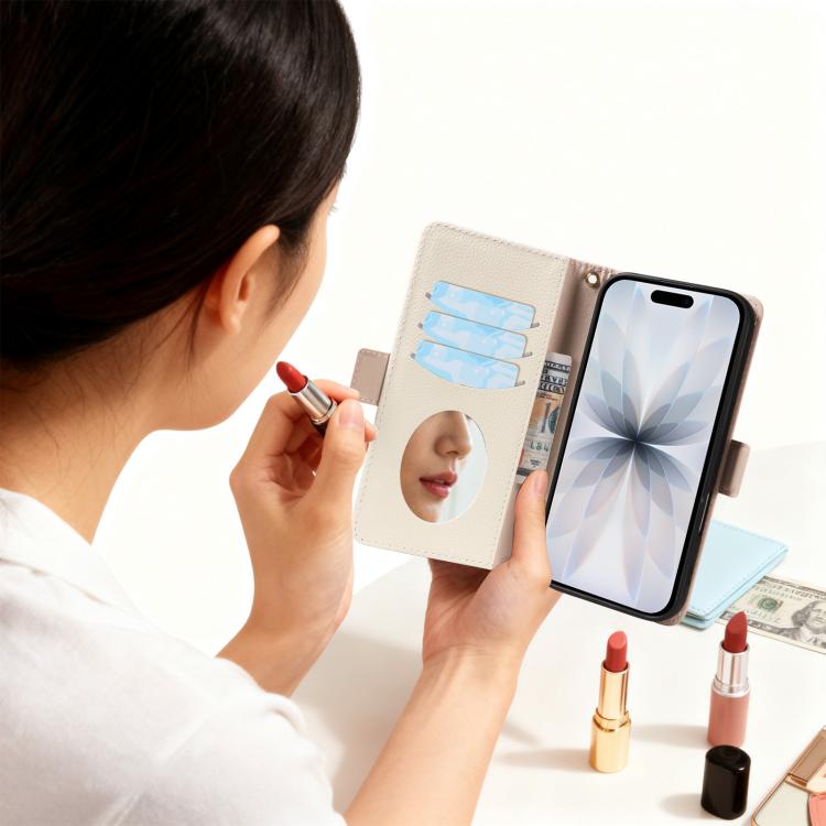 Funda de piel con textura de lichi y espejo para iPhone 17 (verde)