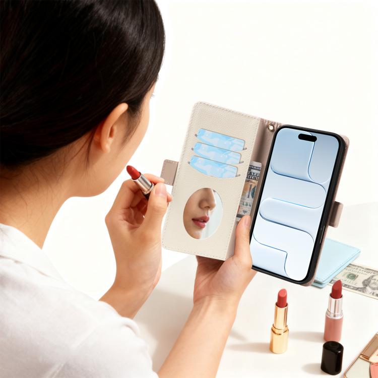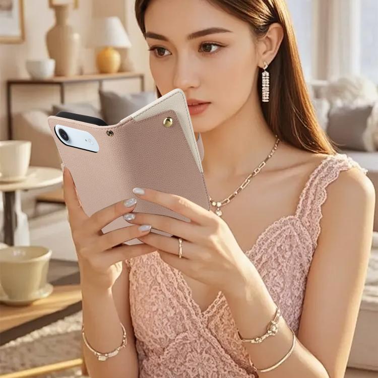 Funda de piel con textura de lichi y espejo para iPhone Air (rosa)