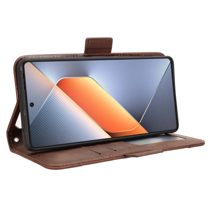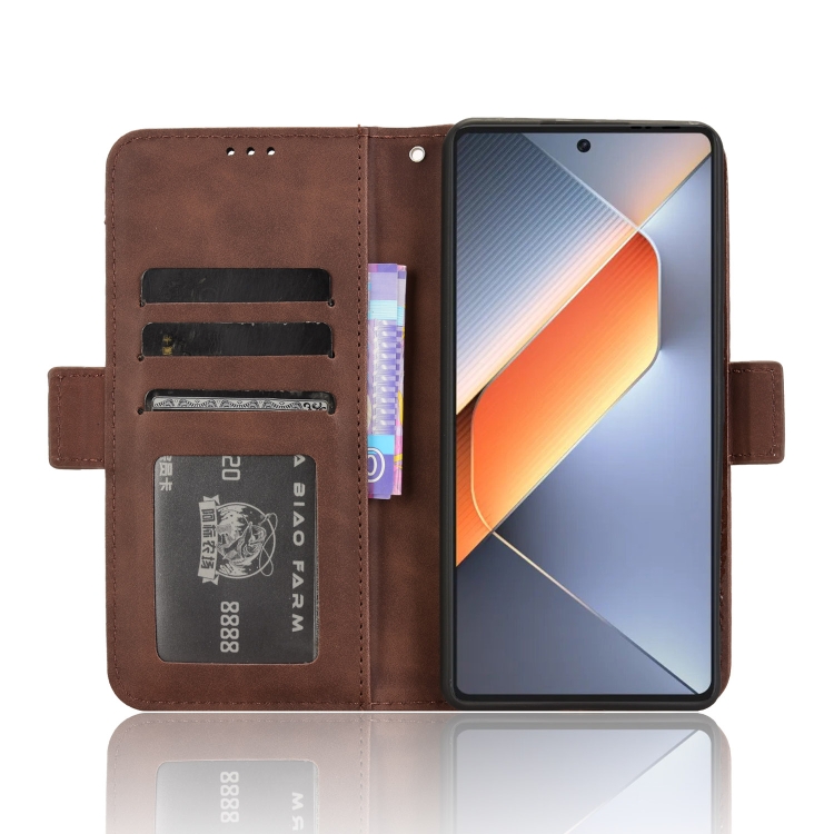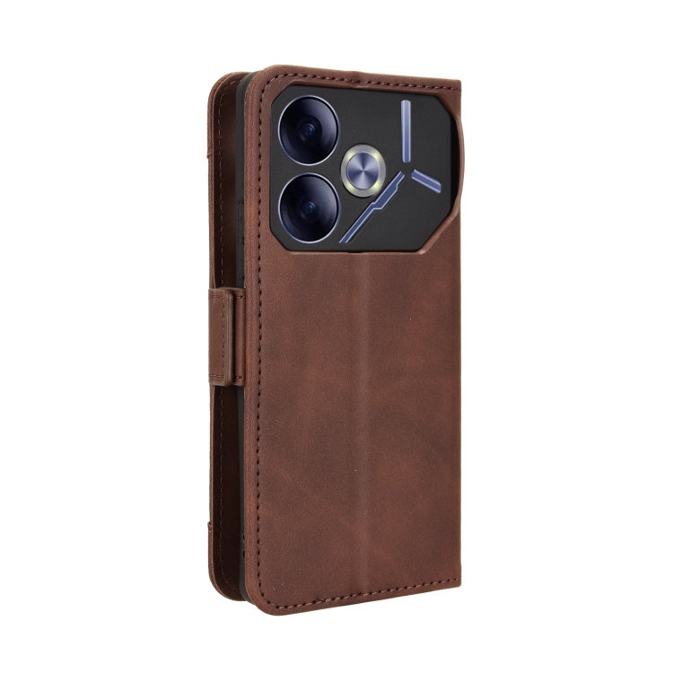 Funda de Piel con Textura de Becerro con Ranuras para Tarjetas para Tecno Pova 6 4G (Marrón)