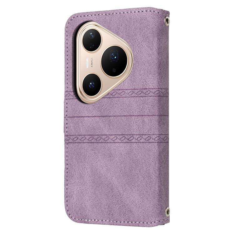 Funda de piel con textura de rayas en relieve para Huawei Pura 80 5G (morado claro)