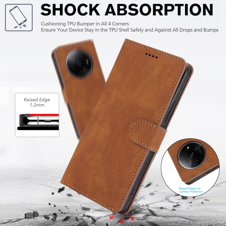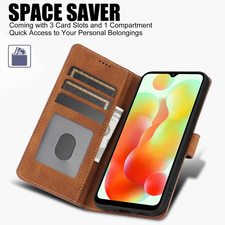 Funda de Piel de Becerro con Textura de Fantasía Global para Redmi A3 4G (Marrón)