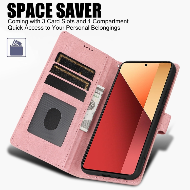 Funda de Piel de Becerro con Textura de Piel de Becerro con Diseño de Fantasía Global para Redmi Note 13 4G (Rosa)