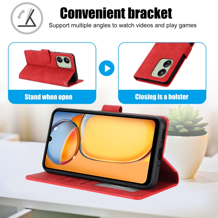 Funda de Piel de Becerro con Textura de Piel de Becerro Global Fantasy para Xiaomi Poco C65 (Rojo)