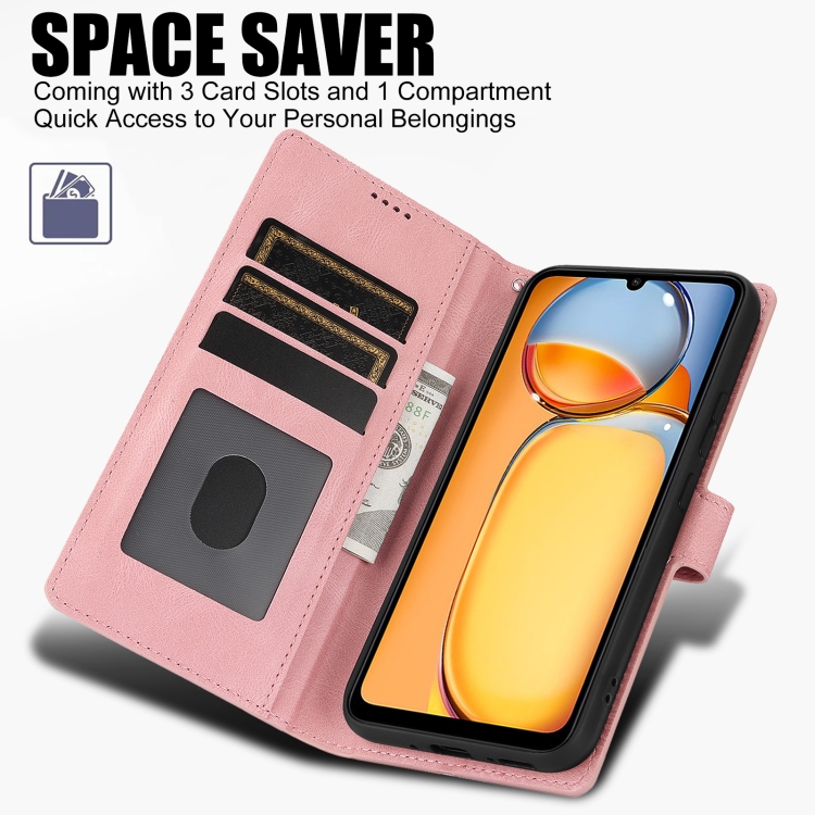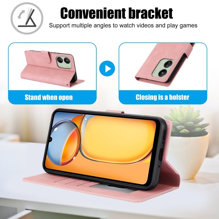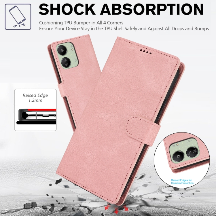 Funda de Piel de Becerro con Textura de Piel de Becerro y Diseño de Fantasía Global para Redmi 13C 4G (Rosa)
