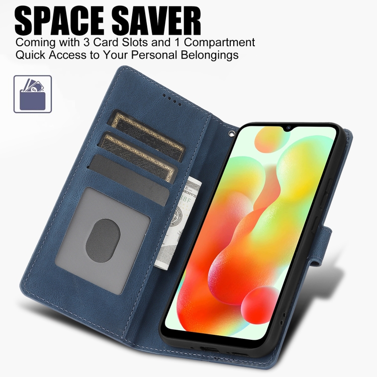 Funda de Piel de Becerro con Textura de Piel de Becerro y Diseño de Fantasía Global para Xiaomi Poco C61 4G (Azul)
