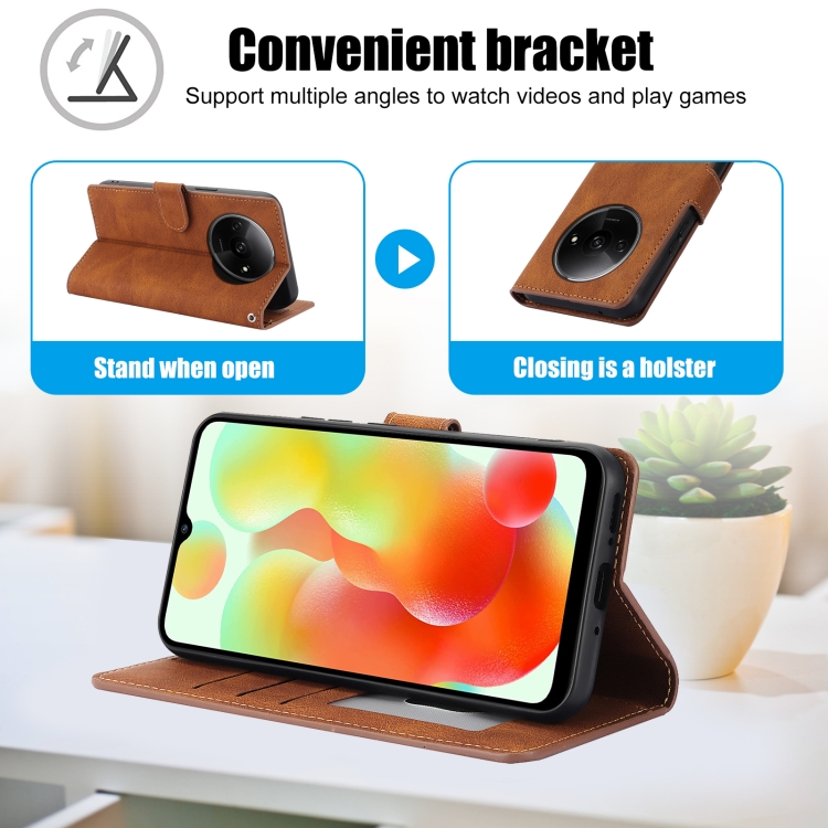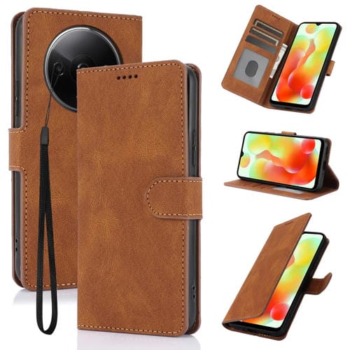 Funda de Piel de Becerro con Textura de Piel de Becerro y Diseño de Fantasía Global para Xiaomi Poco C61 4G (Marrón)