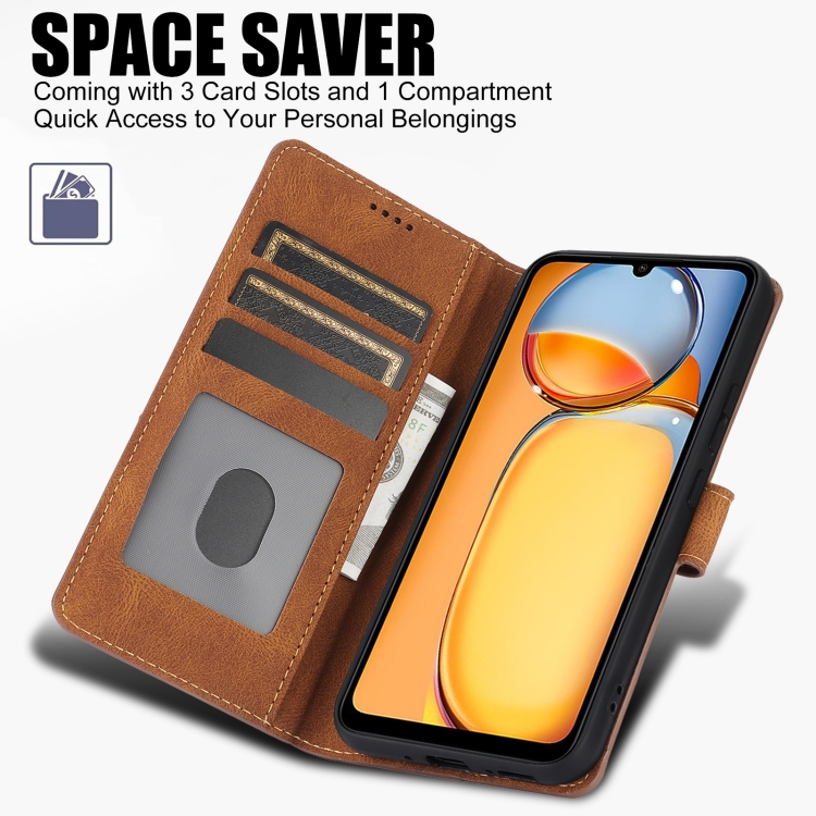 Funda de Piel de Becerro con Textura de Piel de Becerro y Tacto Fantástico para Redmi 13C 4G (Marrón)