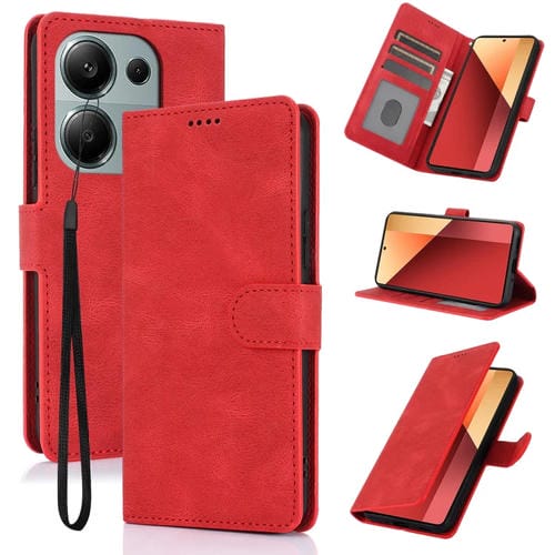 Funda de Piel de Becerro con Textura de Piel de Becerro y Tacto Fantástico para Xiaomi Poco X6 5G (Rojo)